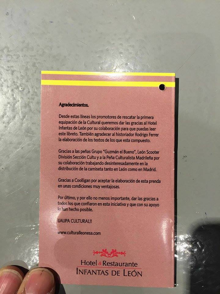 Aquí no queda la cosa, ya que gracias al Hotel Infantas de León la camiseta tendrá una bonita sorpresa que es un libreto que hace un pequeño extracto de la historia de nuestro club, aportación de nuestro amigo Rodrigo Ferrer.